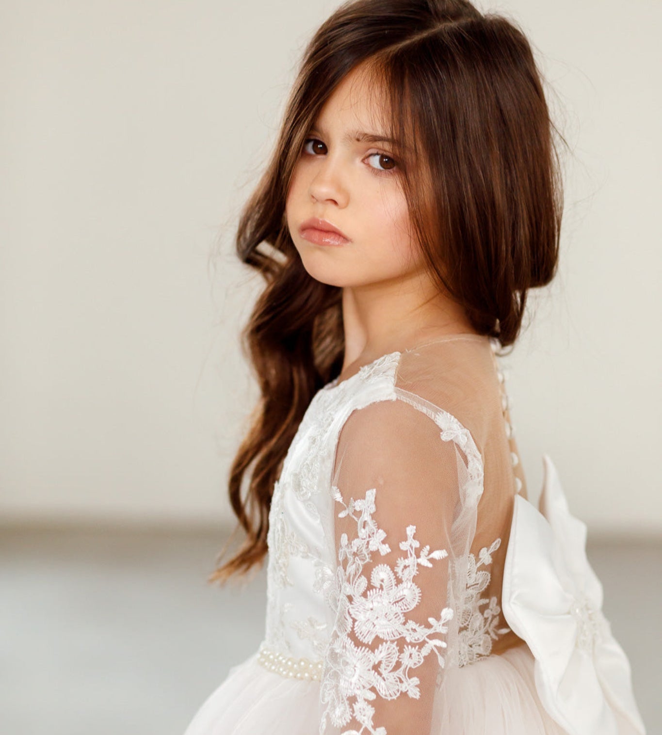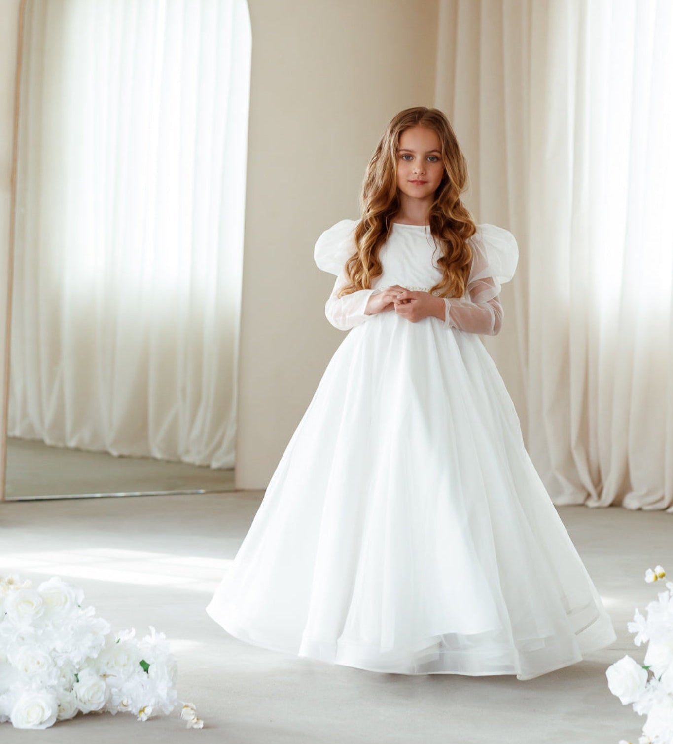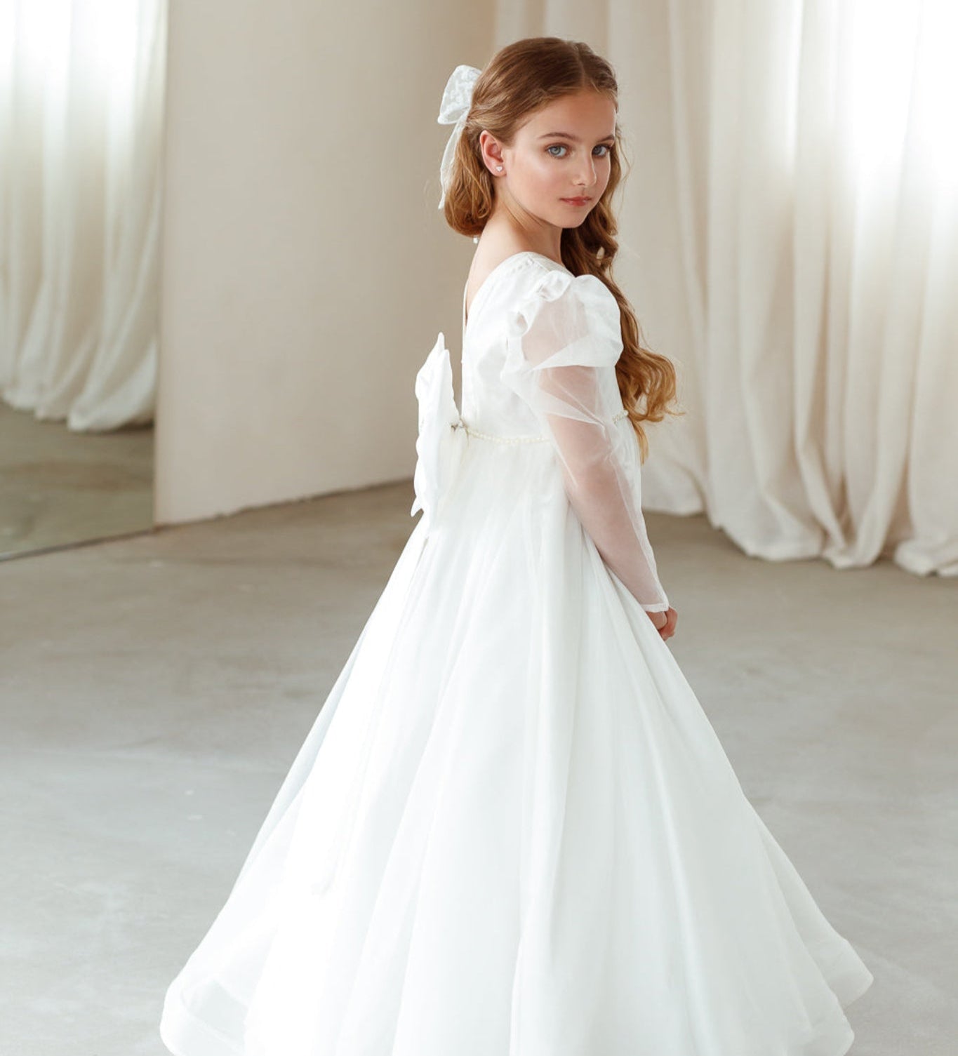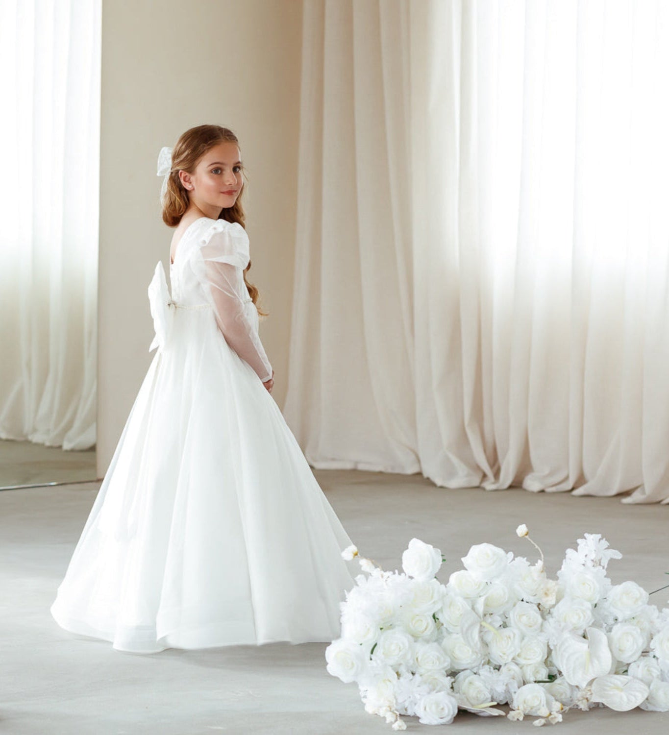 De collectie bevat onder andere kinderjurken in klassiek wit, met tule, satijn en organza als belangrijkste materialen. Perfect voor bloemenmeisjes of kleine bruidsmeisjes. Elke jurk combineert comfort met een stijlvolle uitstraling en is verkrijgbaar in diverse maten en kleuren.
