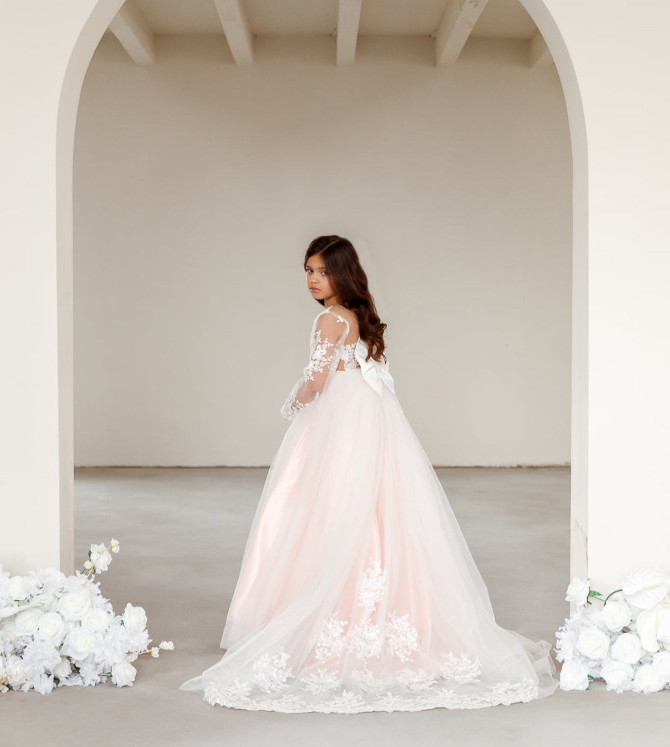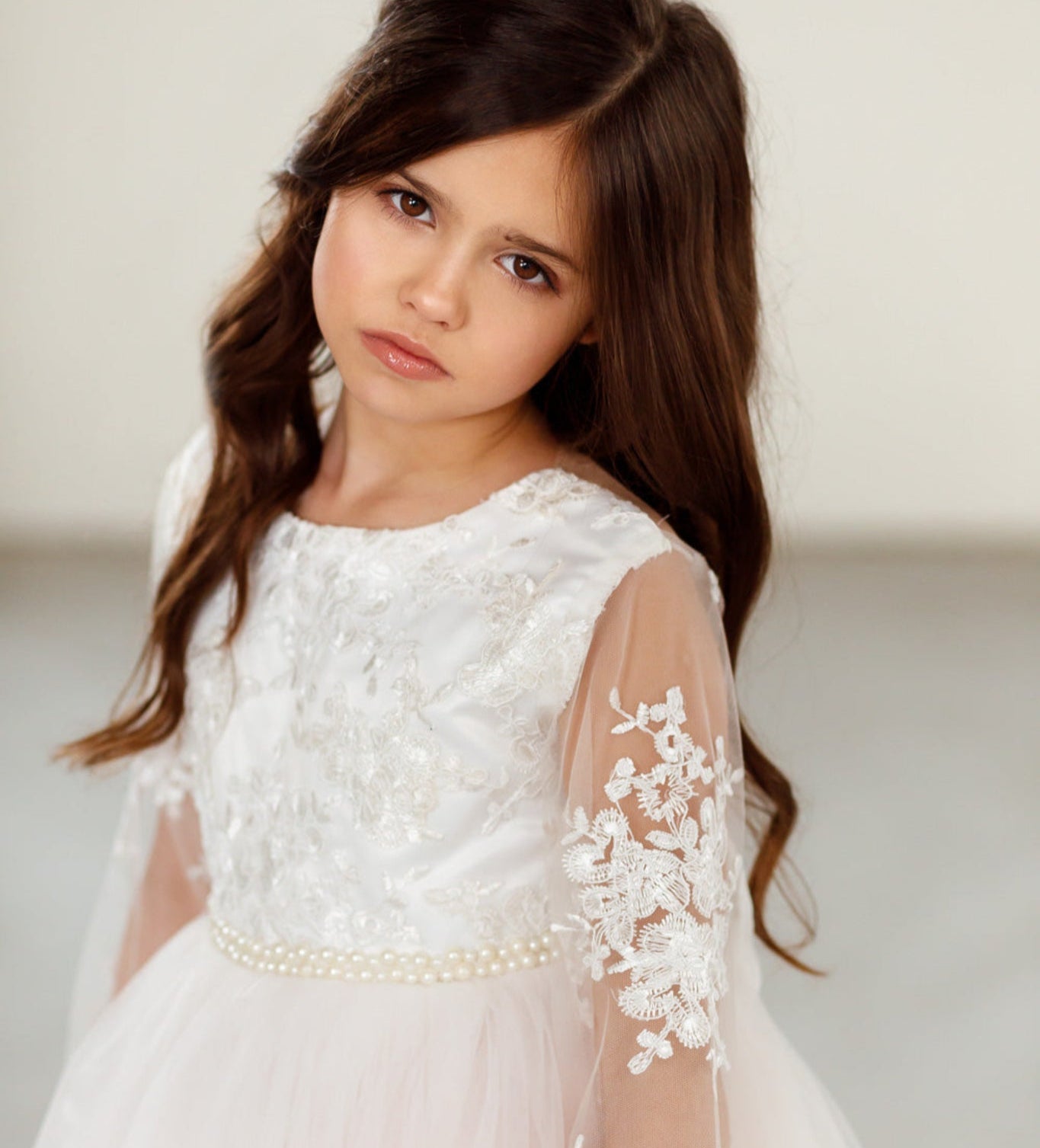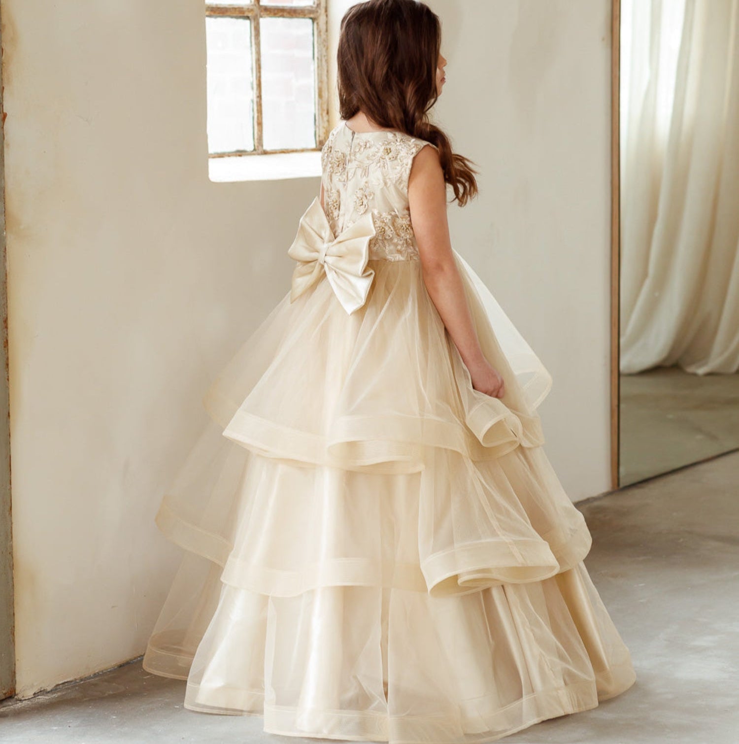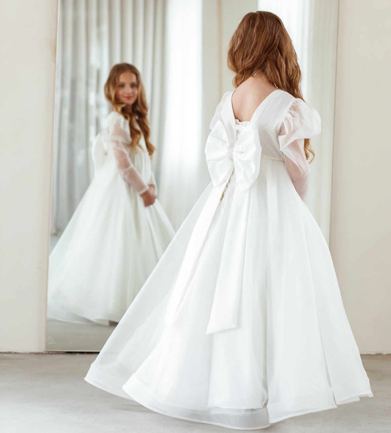 De collectie bevat onder andere kinderjurken in klassiek wit, met tule, satijn en organza als belangrijkste materialen. Perfect voor bloemenmeisjes of kleine bruidsmeisjes. Elke jurk combineert comfort met een stijlvolle uitstraling en is verkrijgbaar in diverse maten en kleuren.