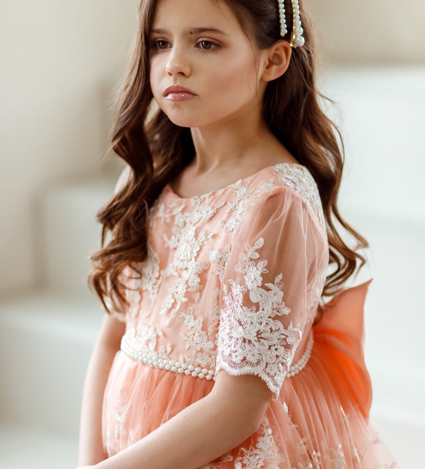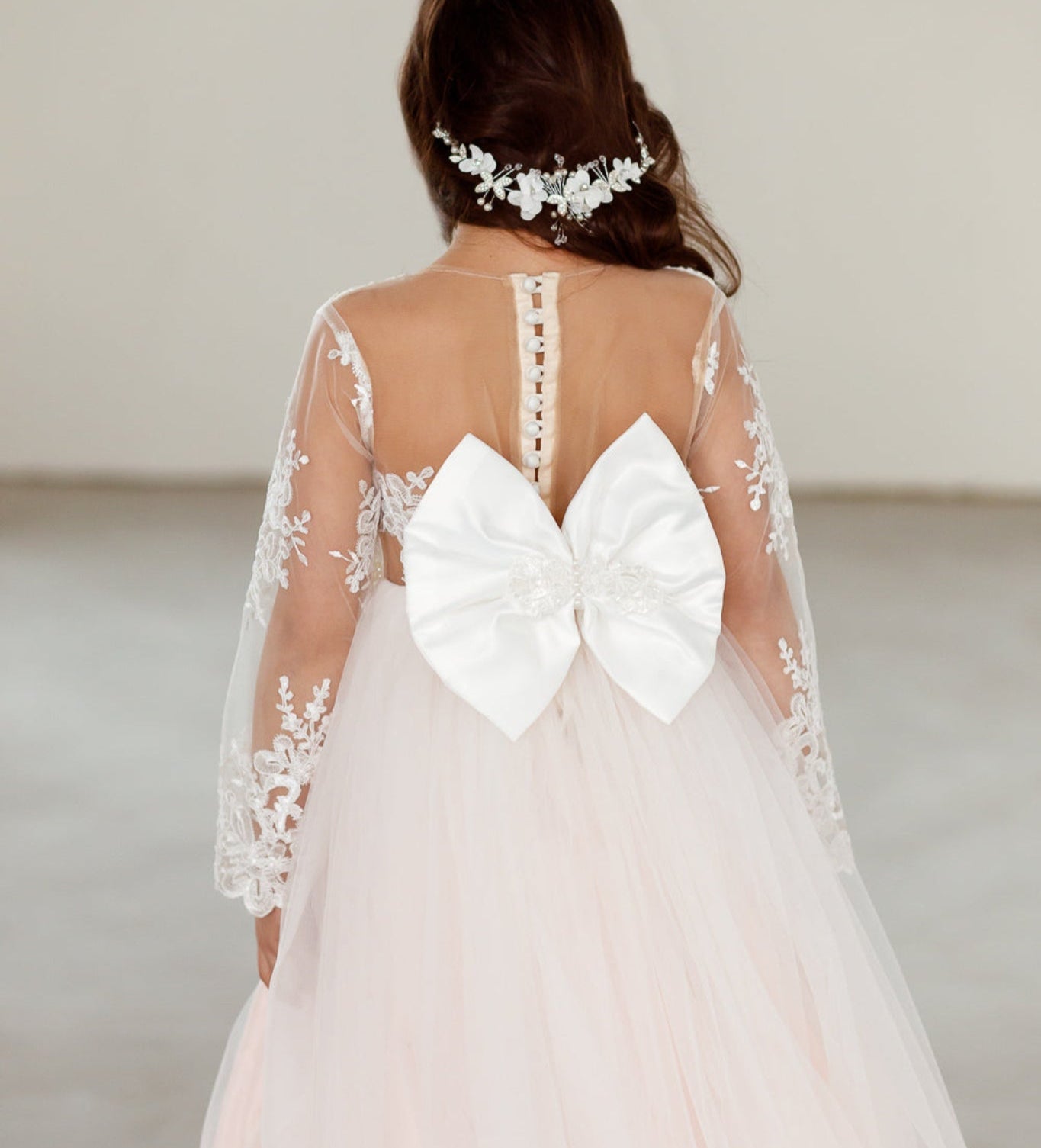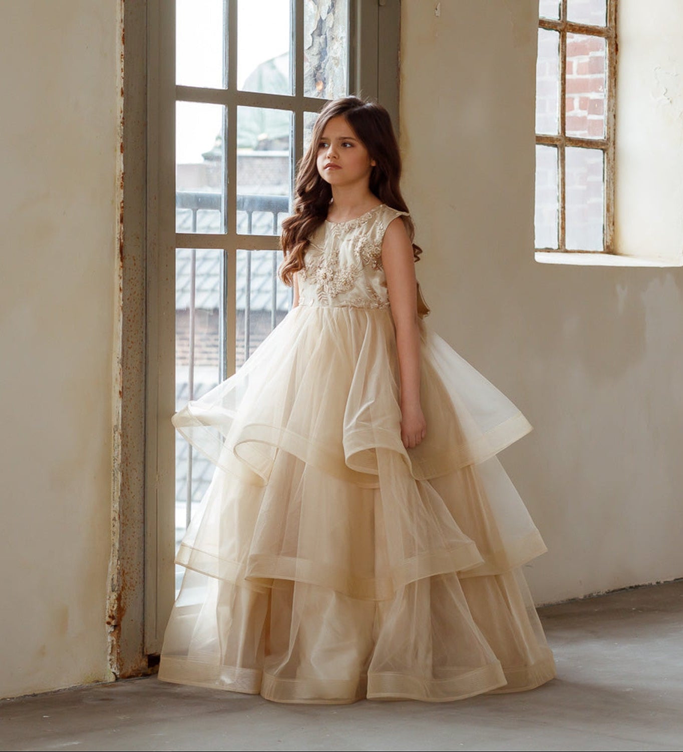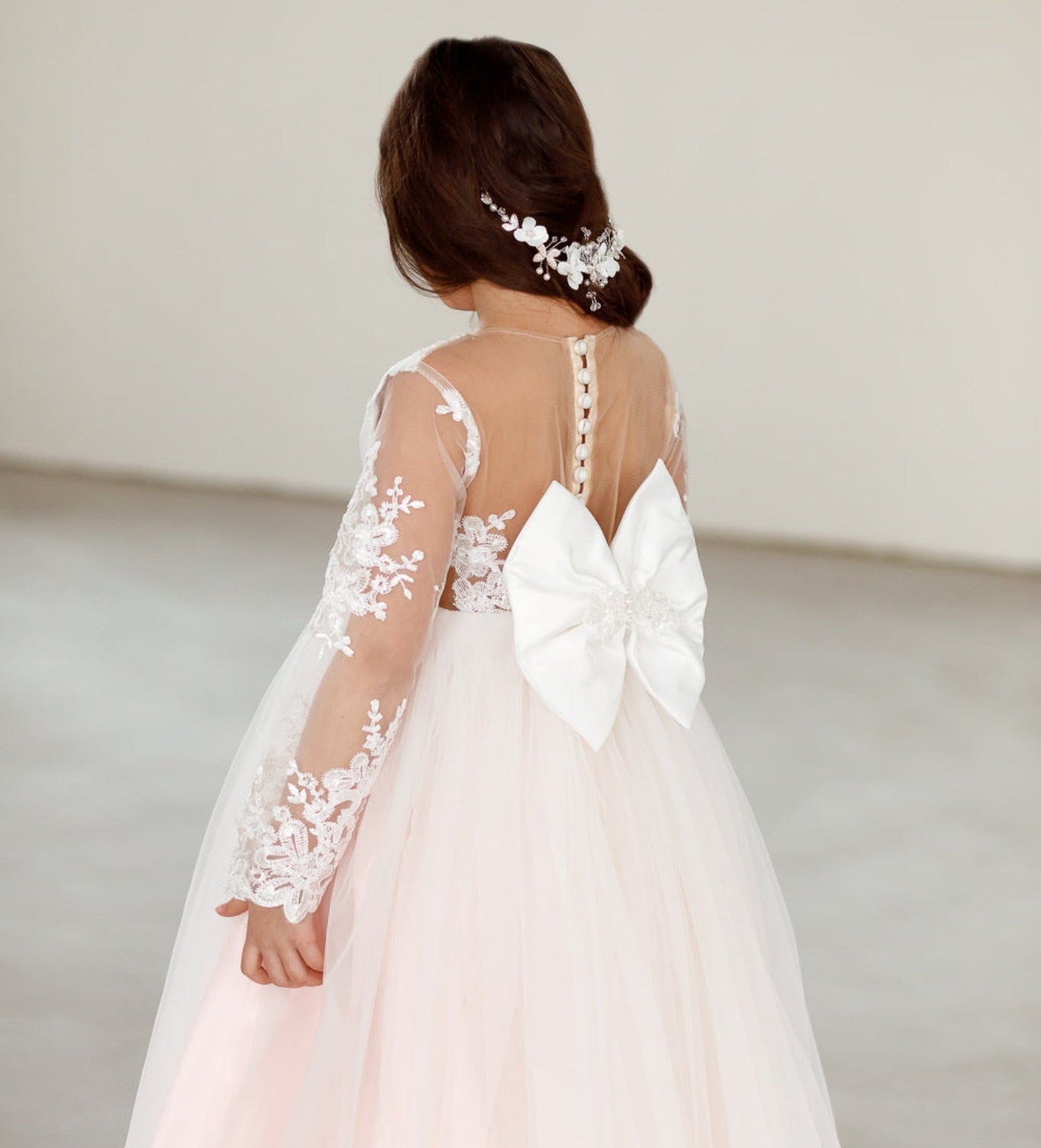 De collectie bevat onder andere kinderjurken in klassiek wit, met tule, satijn en organza als belangrijkste materialen. Perfect voor bloemenmeisjes of kleine bruidsmeisjes. Elke jurk combineert comfort met een stijlvolle uitstraling en is verkrijgbaar in diverse maten en kleuren.